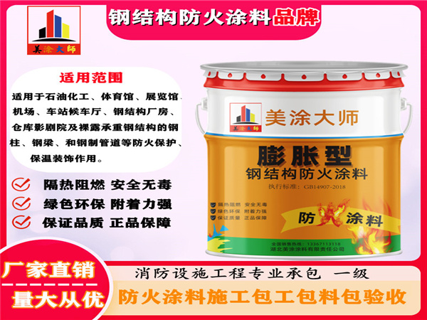 室外超薄型钢结构连平防火涂料是一种由复合材料、阻燃材料、防火填料等组成,并选用最新型的阻燃剂、发泡、发炭、催化剂等加工而成的新型连平防火涂料。该涂料涂层薄、用量少、耐火时间长,粘结力强,耐候、抗冲击、耐冻融性好。并具有较好的耐化工大气腐蚀性,涂层遇火时迅速膨胀增厚,形成发泡致密、均匀的隔热层,延长了耐火时间,从而达到防火保护作用。耐火时间根据等级不同可达0.50 h -2.00 h不等。